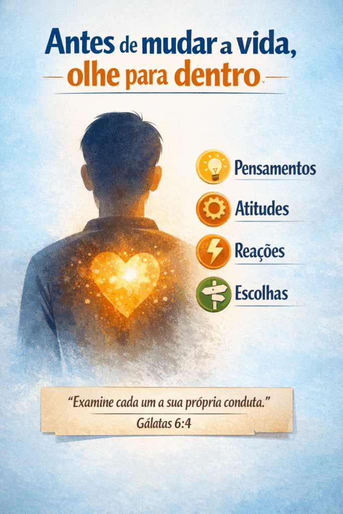 A Bíblia, no entanto, sempre ensinou que o crescimento começa de dentro para fora. Antes de mudar comportamentos, é preciso compreender motivações. Antes de cobrar o mundo, é necessário examinar o próprio coração.