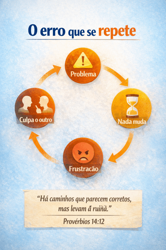 Na família, a ausência de reflexão pessoal cria ciclos de brigas, distanciamento emocional e repetição de erros herdados. Muitos querem paz no lar, mas não revisam atitudes, palavras e reações.