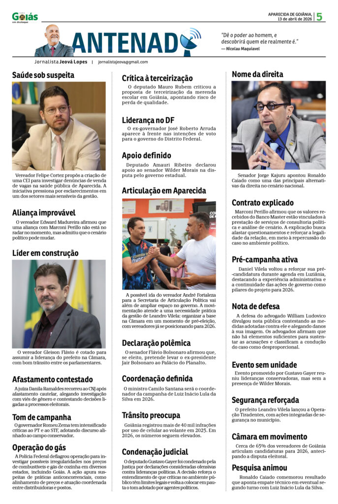 A política em Goiás entrou em uma nova fase. Investigações em áreas sensíveis, movimentações partidárias, pré-campanhas em ritmo crescente e articulações nos bastidores mostram que o cenário para 2026 já está sendo desenhado com mais intensidade e com disputas cada vez mais visíveis.