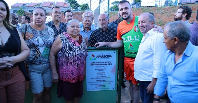O secretário de Esportes, Gerfeson Aragão, explicou que a arena leva o nome de Campo Sintético Society Hugo Moreira Magalhães em homenagem ao ex-diretor da Secretaria de Esportes que era muito querido no meio político e esportivo de Aparecida. Hugo Magalhães morreu no ano passado. “O Hugo se sentia muito bem na praça de esportes”, lembrou Aragão.