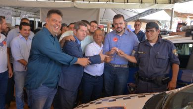 Gustavo Mendanha e Delegado Waldir entregam novas viaturas para a GCM de Aparecida durante Prefeitura em Ação