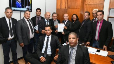 O prefeito de Santa Tereza de Goiás, Edson Palmeiras dos Santos, o seu vice, Mariozon Lemes e os vereadores: Elis…