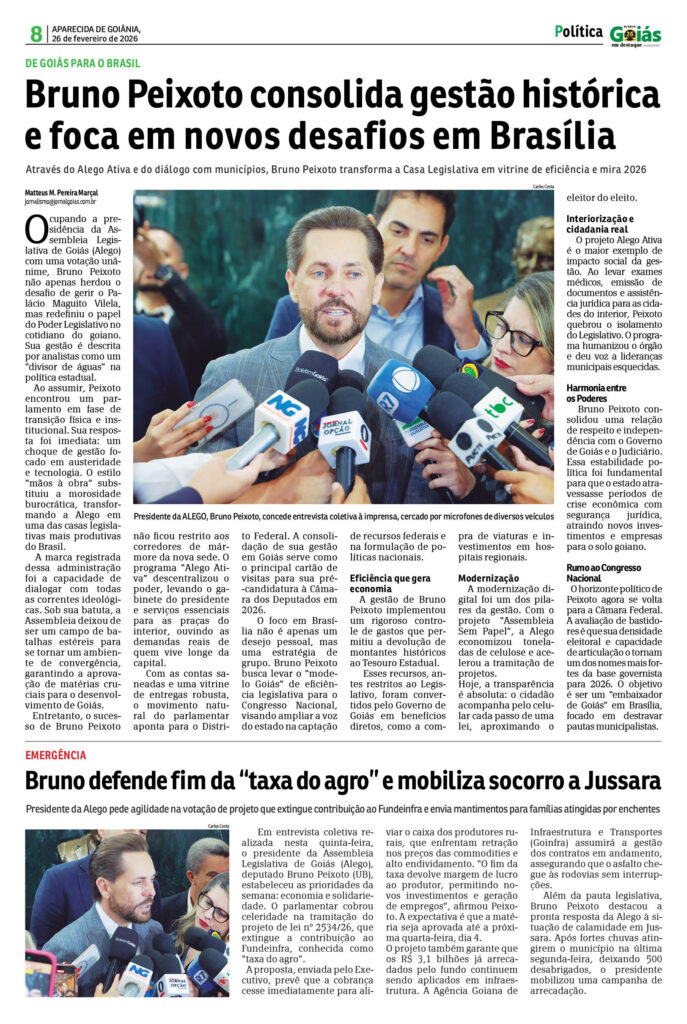 Ocupando a presidência da Assembleia Legislativa de Goiás (Alego) com uma votação unânime, Bruno Peixoto não apenas herdou o desafio de gerir o Palácio Maguito Vilela, mas redefiniu o papel do Poder Legislativo no cotidiano do goiano. Sua gestão é descrita por analistas como um “divisor de águas” na política estadual, marcada por um choque de gestão focado em austeridade e tecnologia.