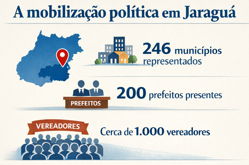 O prefeito de Jaraguá e presidente da Federação Goiana de Municípios, Paulo Vitor Avelar, destacou o tamanho da mobilização política. Segundo ele, o encontro foi um dos maiores já realizados fora da capital.