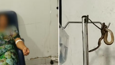 Uma cobra surpreendeu os presentes ao cair do teto e pousar no suporte de soro de uma paciente em um…