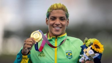 Na chegada ao Brasil, Ana Marcela Cunha festeja ouro olímpico: ‘Sempre acreditei’