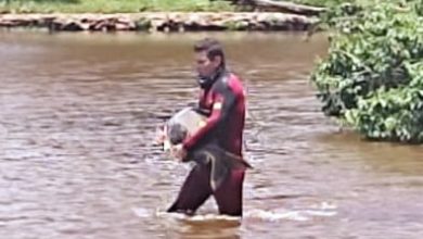 Veja vídeo: Bombeiros resgatam peixe que ficou encalhado no lago do Parque Vaca Brava