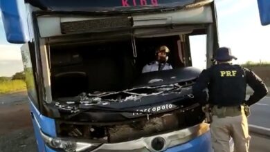 PRF flagra motorista usando capacete em ônibus sem para-brisa em Cristalina