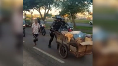 Policiais militares empurram carrinho para ajudar idosa catadora de recicláveis; assista