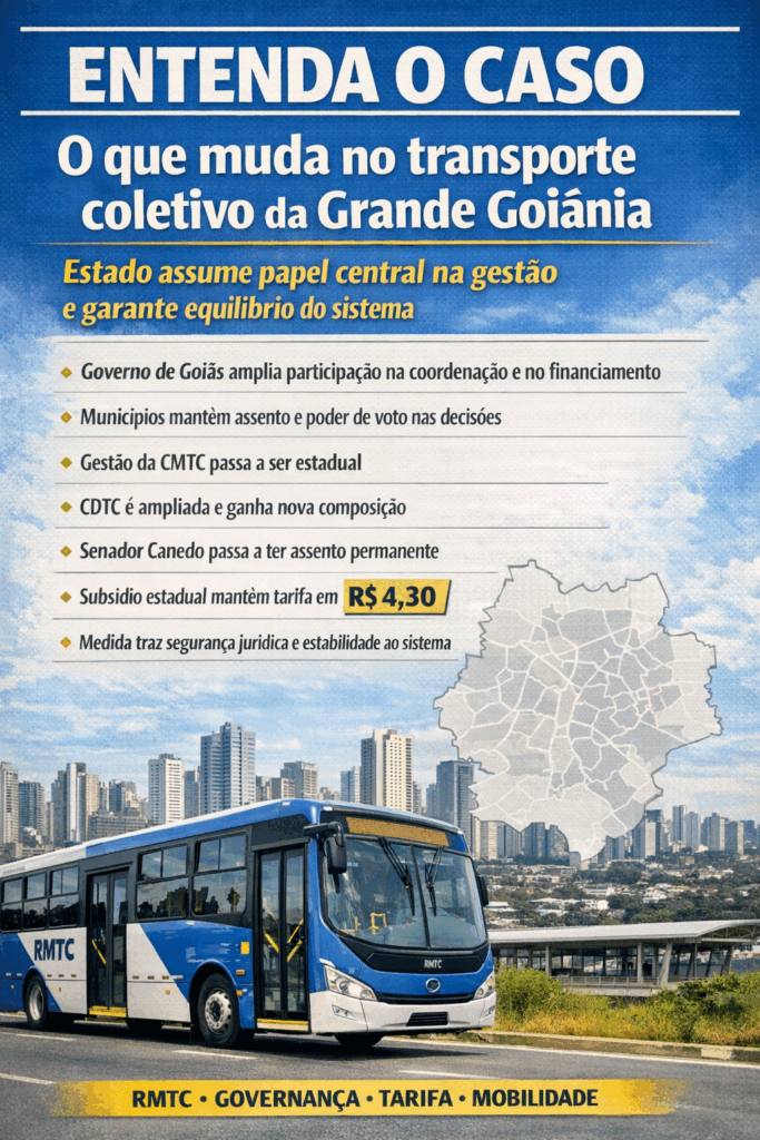 Em resumo, a medida busca organizar a gestão, garantir segurança jurídica, dividir melhor os custos e assegurar a continuidade do transporte coletivo na Região Metropolitana de Goiânia.