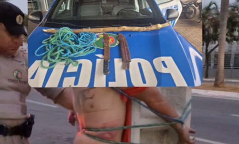 Um homem suspeito de furto foi espancado e amarrado por populares no centro de Goiânia neste sábado (10). O incidente ocorreu após o indivíduo ser flagrado tentando roubar itens de um caminhão estacionado próximo a um supermercado.