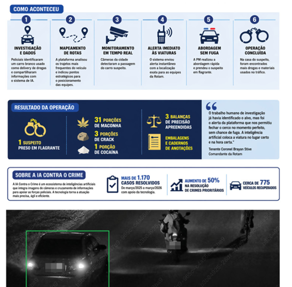 Segundo o comando da Rotam, a integração entre inteligência policial e tecnologia foi determinante para o resultado da ação. A avaliação é de que o uso de sistemas capazes de cruzar dados e emitir alertas em tempo real amplia a capacidade de resposta das equipes nas ruas.