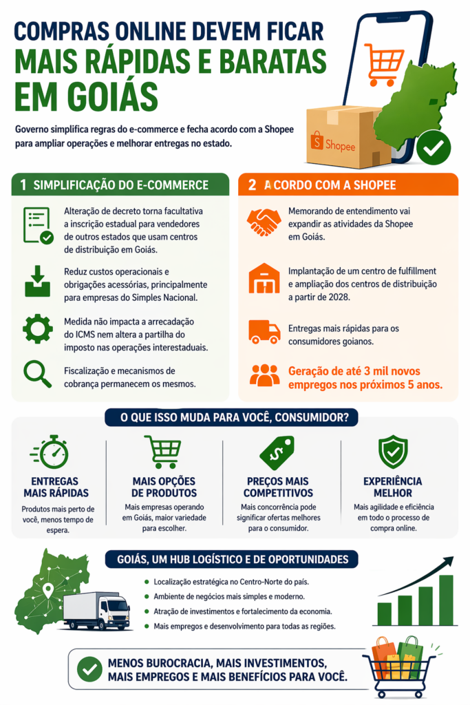A principal mudança envolve a simplificação das regras para empresas que operam com centros de distribuição em território goiano. A partir de agora, vendedores de outros estados poderão atuar sem a obrigatoriedade de inscrição estadual, o que reduz custos e facilita a operação, especialmente para pequenos e médios empreendedores.