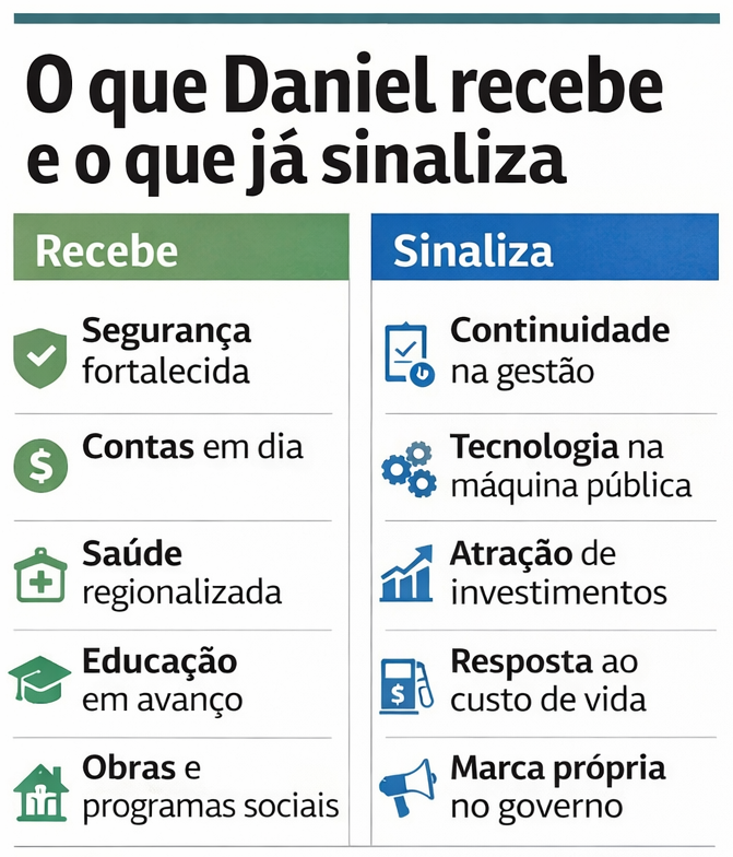 A largada do novo governo aponta, assim, para uma combinação entre continuidade administrativa e construção de marca própria, com foco em gestão, desenvolvimento e respostas práticas ao dia a dia.