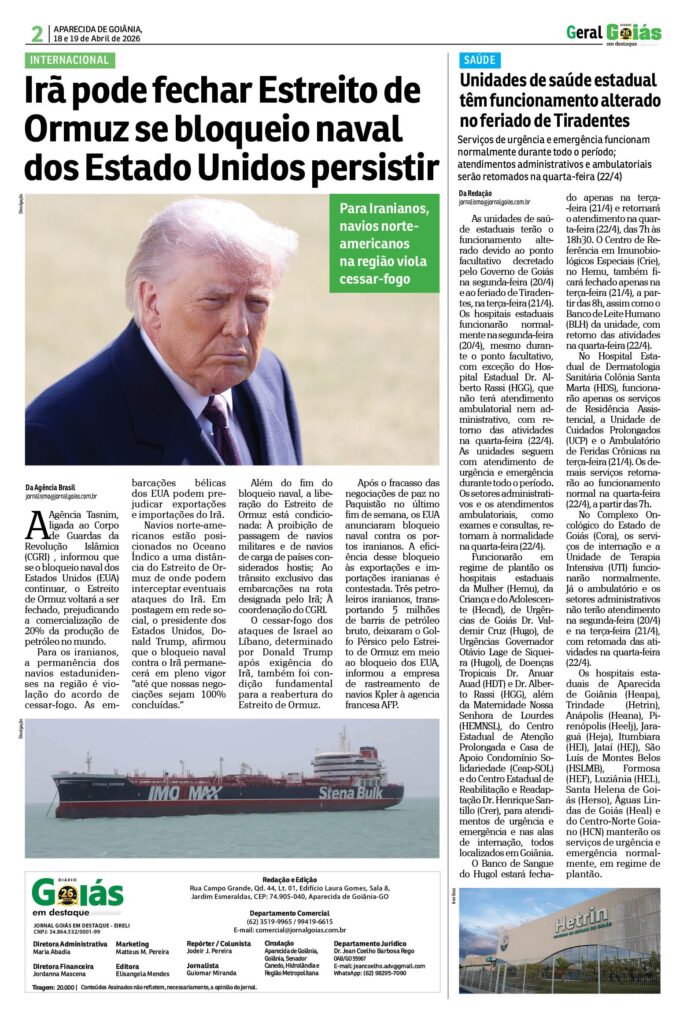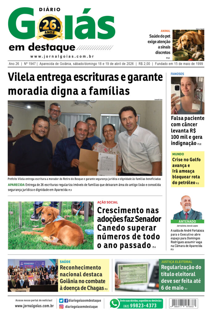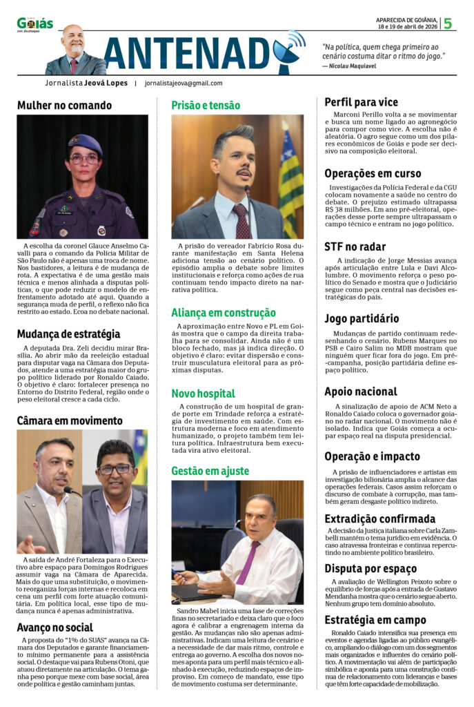 Início/Notícia/Fim de semana, n° 1947 NotíciaEdição Impressa Fim de semana, n° 1947 18 de abril de 2026 18 de abril de 2026 Compartilhar Facebook X Linkedin WhatsApp Telegram Compartilhar via e-mail