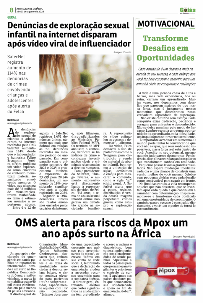 Início/Edição Impressa/Fim de semana, nº 1745 Edição Impressa Fim de semana, nº 1745 16 de agosto de 2025 16 de agosto de 2025 Compartilhar Facebook X Linkedin WhatsApp Telegram Compartilhar via e-mail