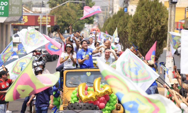 A primeira-dama e coordenadora do Goiás Social, Gracinha Caiado, esteve em Jaraguá para reafirmar o apoio ao candidato pelo União Brasil à prefeitura, Paulo Vitor Avelar, neste sábado (28/9). Atualmente no cargo, ele busca a reeleição com o aval do governador Ronaldo Caiado, além de diversos secretários estaduais e deputados, que participaram de uma grande carreata pelas ruas da cidade.