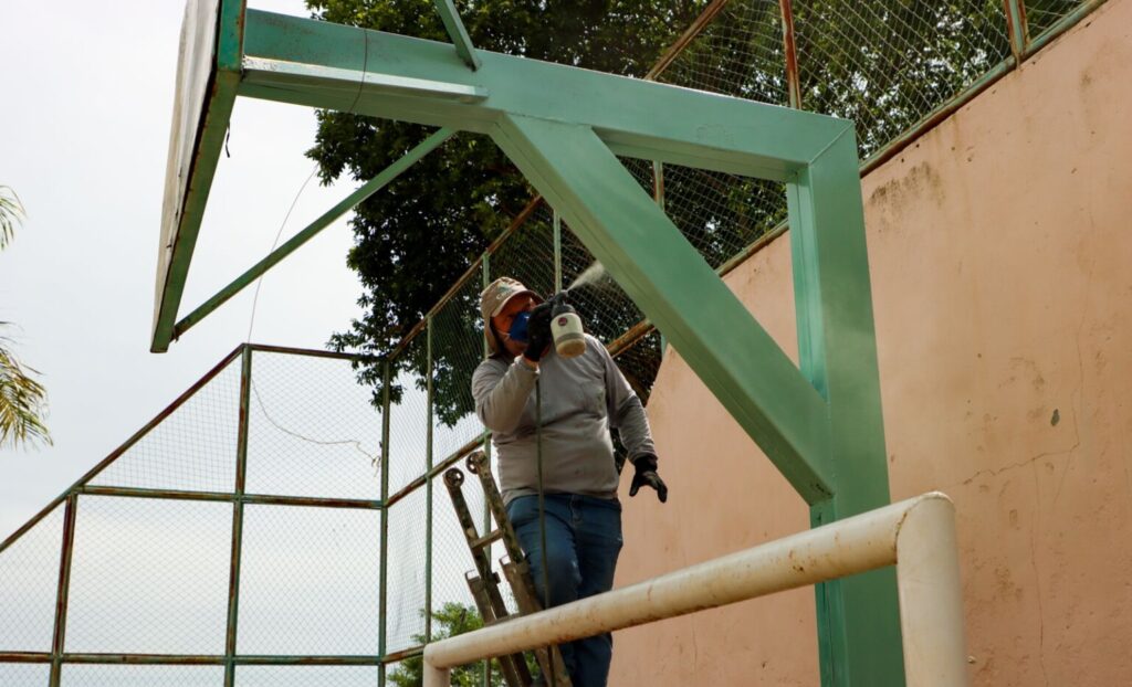 Já na Vila Bom Sucesso, a quadra esportiva situada atrás da Unidade Básica de Saúde recebeu nova pintura, devolvendo ao espaço condições adequadas para a prática esportiva e momentos de lazer. A iniciativa reforça o cuidado da gestão municipal com os equipamentos públicos e a valorização dos bairros, além de estimular o uso dos espaços pela população.