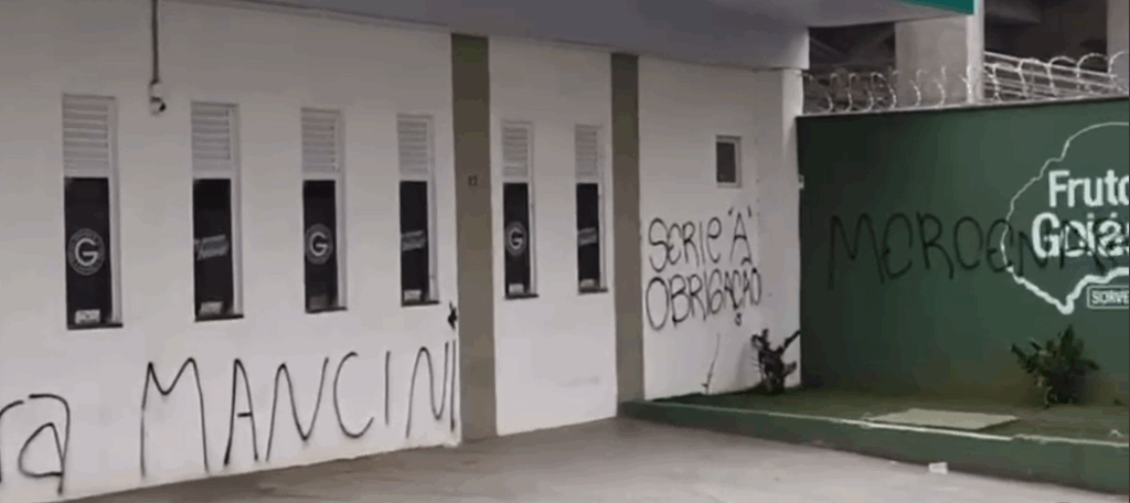 Entre as frases escritas, estavam: “Série A obrigação”, “Fora Mancini”, “Fora Andrino” e “Mercenários”. As pichações cobriam boa parte do muro principal da Serrinha, chamando atenção de quem passava pelo local nas primeiras horas do dia.