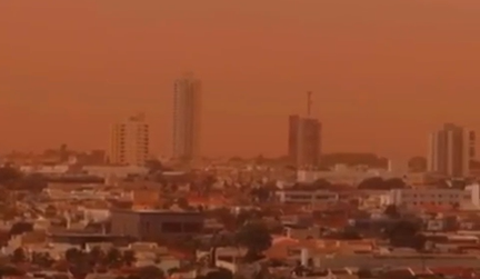 Nuvem de poeira cobre Jataí após chuva e deixa cidade com tom alaranjado