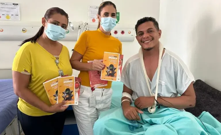 O Hospital de Urgências de Goiás Dr. Valdemiro Cruz (Hugo) realiza ação para conscientizar pacientes, acompanhantes e colaboradores da unidade do Governo de Goiás sobre o Maio Amarelo, campanha que chama a atenção da sociedade para o alto índice de mortes e feridos no trânsito em todo o mundo.