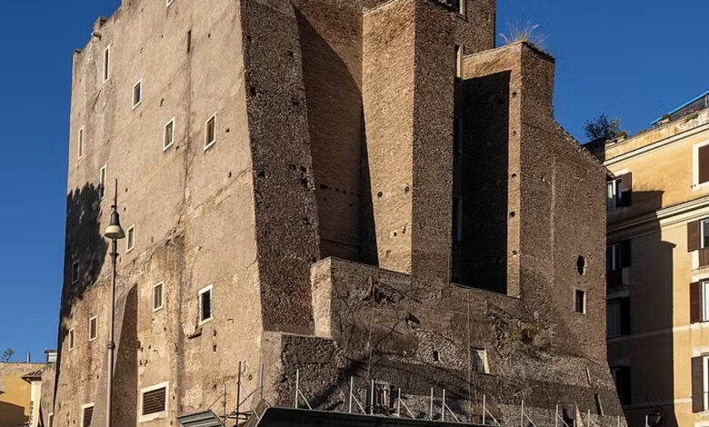 A Torre dei Conti, construída no século XII, fica próxima ao Coliseu e ao Fórum Imperial Romano, em uma região de grande valor histórico e turístico. O edifício estava desocupado desde 2006 e passava por um projeto de renovação de quatro anos, com previsão de conclusão em 2026.