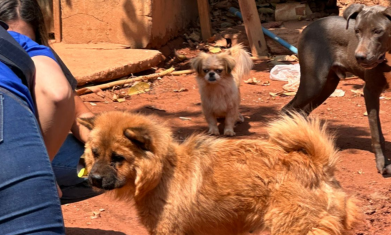 No imóvel, não havia comida nem água para os animais, que estavam em um ambiente insalubre, sujo e com excesso de fezes. Os cães estavam infestados de ectoparasitas.