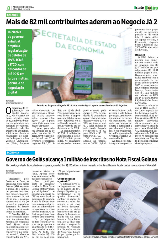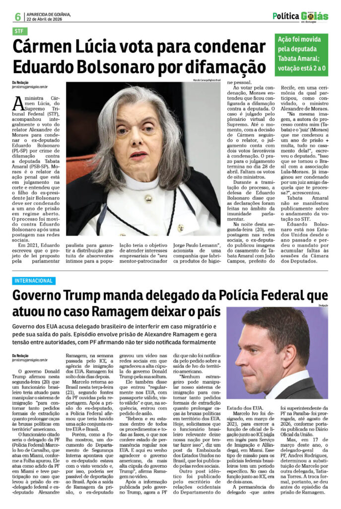 Início/Notícia/Quarta-feira, n° 1950 NotíciaEdição Impressa Quarta-feira, n° 1950 21 de abril de 2026 21 de abril de 2026 Compartilhar Facebook X Linkedin WhatsApp Telegram Compartilhar via e-mail