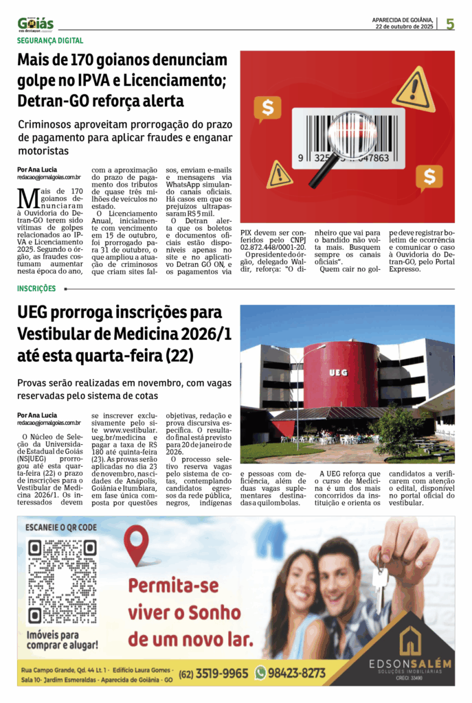 Início/Edição Impressa/Quarta-feira, nº 1801 Edição Impressa Quarta-feira, nº 1801 22 de outubro de 2025 22 de outubro de 2025 Compartilhar Facebook X Linkedin WhatsApp Telegram Compartilhar via e-mail