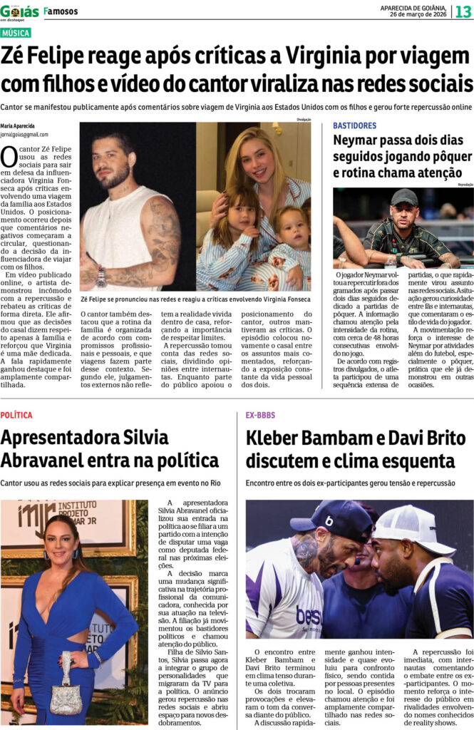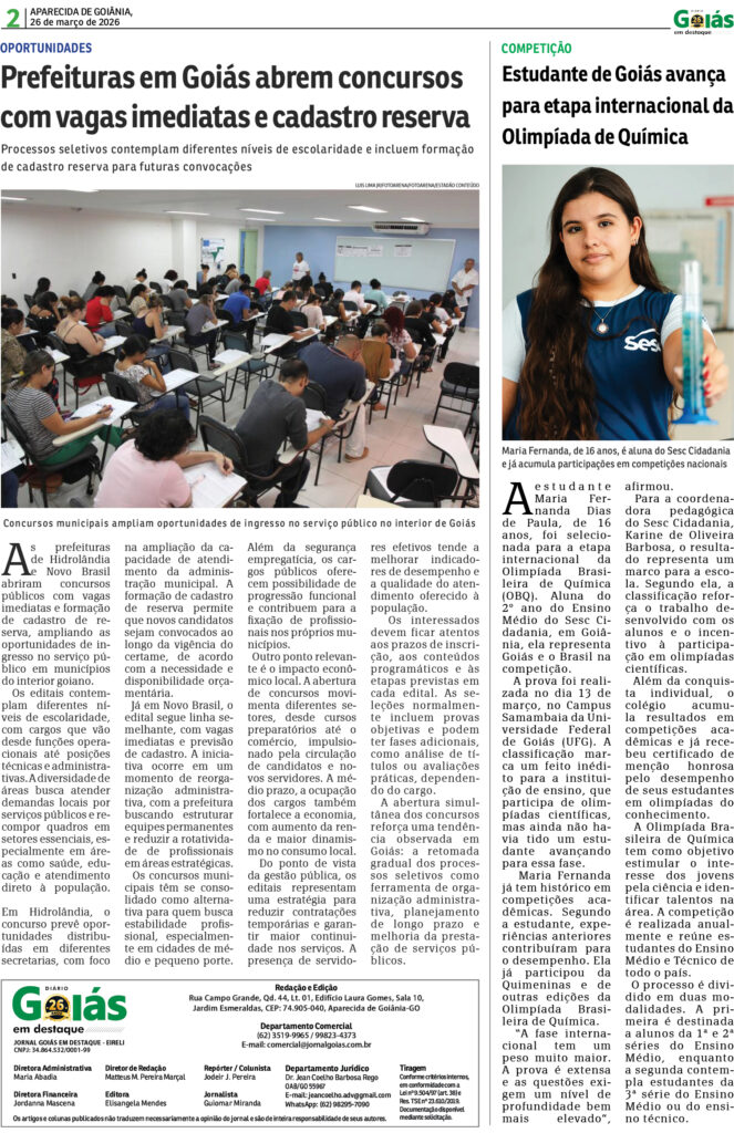 Início/Edição Impressa/Quinta-feira, n° 1930 Edição Impressa Quinta-feira, n° 1930 26 de março de 2026 26 de março de 2026 Compartilhar Facebook X Linkedin WhatsApp Telegram Compartilhar via e-mail
