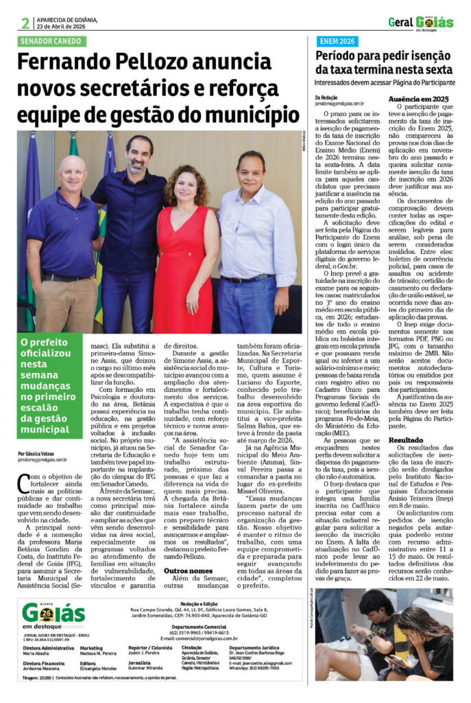 Início/Notícia/Quinta-feira, n° 1951 NotíciaEdição Impressa Quinta-feira, n° 1951 23 de abril de 2026 23 de abril de 2026 Compartilhar Facebook X Linkedin WhatsApp Telegram Compartilhar via e-mail