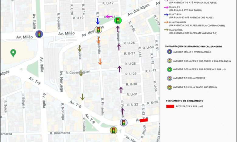A mudança conta ainda com a criação de uma terceira faixa de circulação na Avenida T-9 com a Santo Agostinho. No local também será implantado um binário na Rua da Pompéia/U-25 sentido Sul/Norte (Da Avenida T-9 para Avenida dos Alpes) e Rua Suécia sentido Norte/Sul (Da Avenida dos Alpes para Avenida T-9).