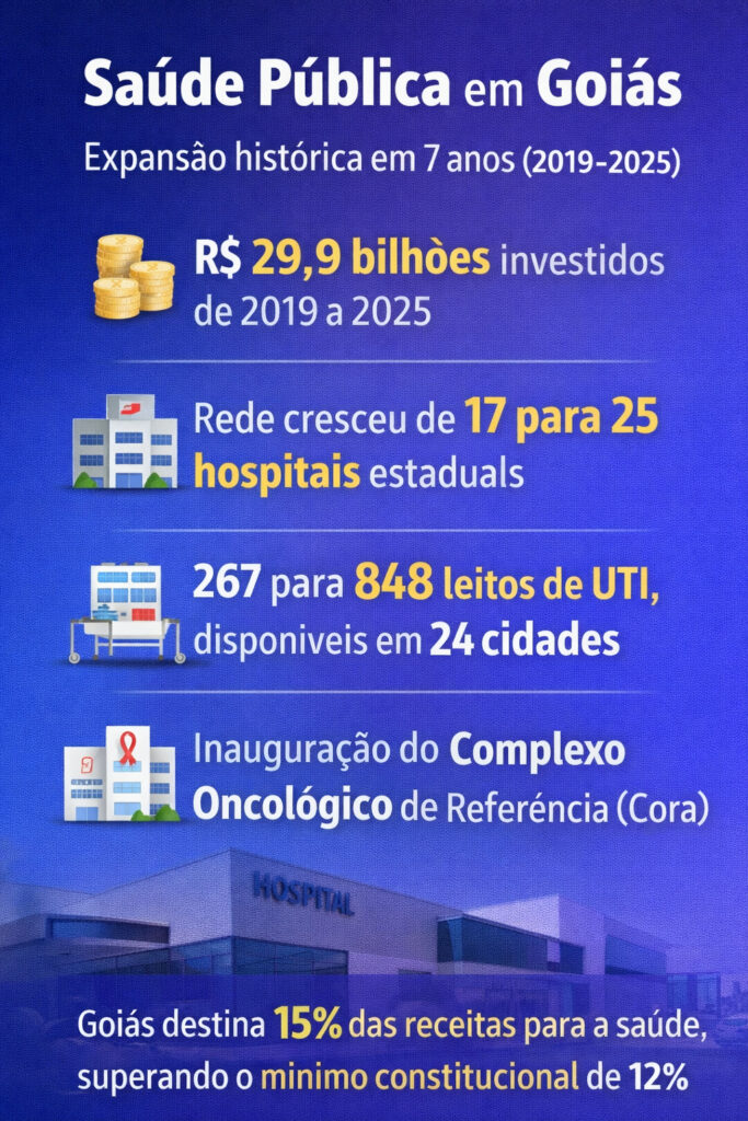 Ao longo dos últimos sete anos, a saúde pública em Goiás passou por uma transformação estrutural sem precedentes, sustentada por investimentos contínuos e expansão da rede de atendimento. Entre 2019 e 2025, a Secretaria de Estado da Saúde de Goiás aplicou R$ 29,9 bilhões no setor, elevando o orçamento anual de R$ 2,6 bilhões para cerca de R$ 5,7 bilhões.