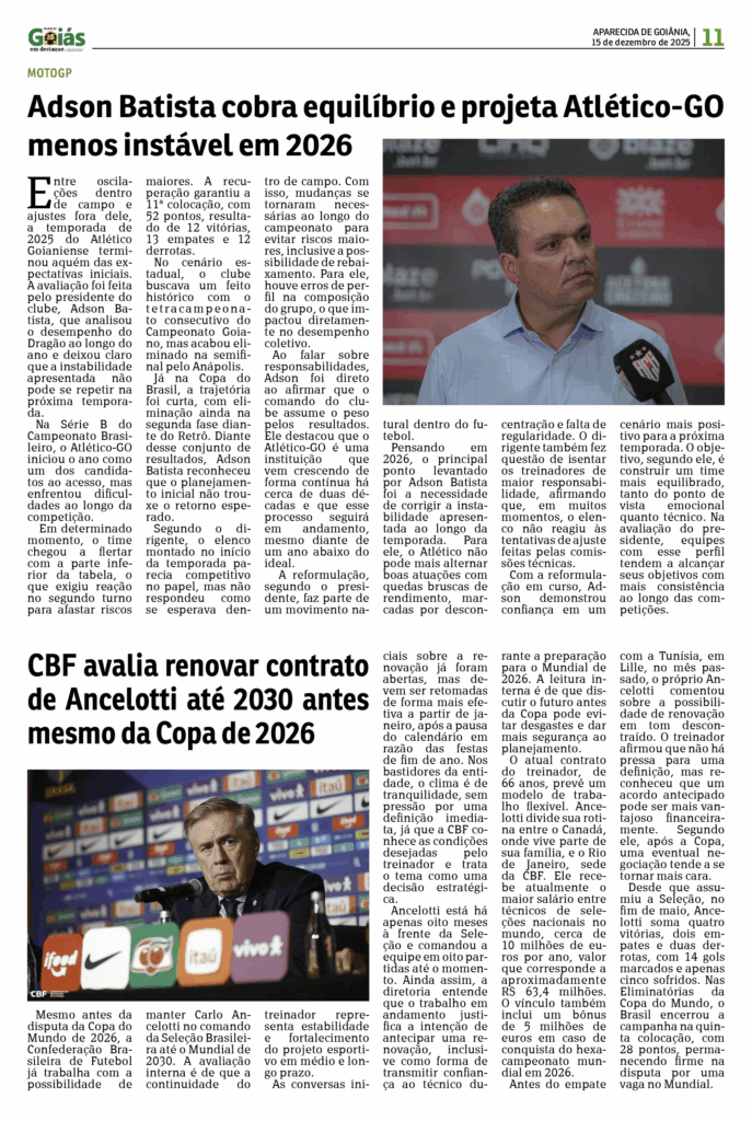 Início/Edição Impressa/Segunda-feira, nº 1847 Edição Impressa Segunda-feira, nº 1847 15 de dezembro de 2025 15 de dezembro de 2025 Compartilhar Facebook X Linkedin WhatsApp Telegram Compartilhar via e-mail