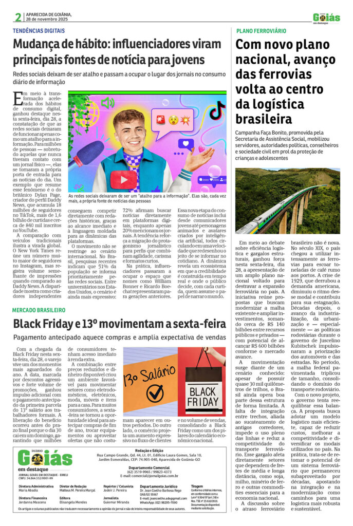 Início/Edição Impressa/Sexta-feira, nº 1833 Edição Impressa Sexta-feira, nº 1833 27 de novembro de 2025 27 de novembro de 2025 Compartilhar Facebook X Linkedin WhatsApp Telegram Compartilhar via e-mail