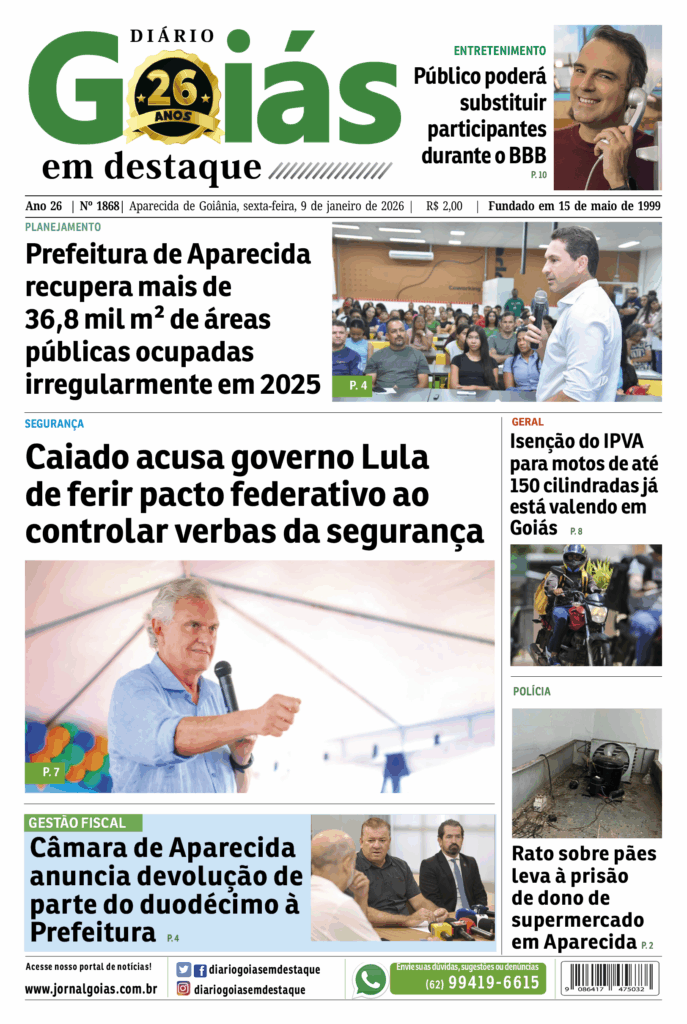 Início/Edição Impressa/Sexta-feira, nº 1869 Edição Impressa Sexta-feira, nº 1869 9 de janeiro de 2026 9 de janeiro de 2026 Compartilhar Facebook X Linkedin WhatsApp Telegram Compartilhar via e-mail