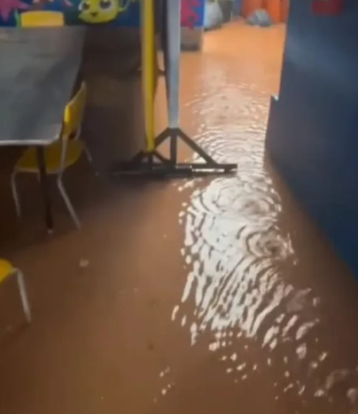 Unidade ficou alagada após forte chuva; crianças foram transferidas com segurança para outra escola e ninguém ficou ferido