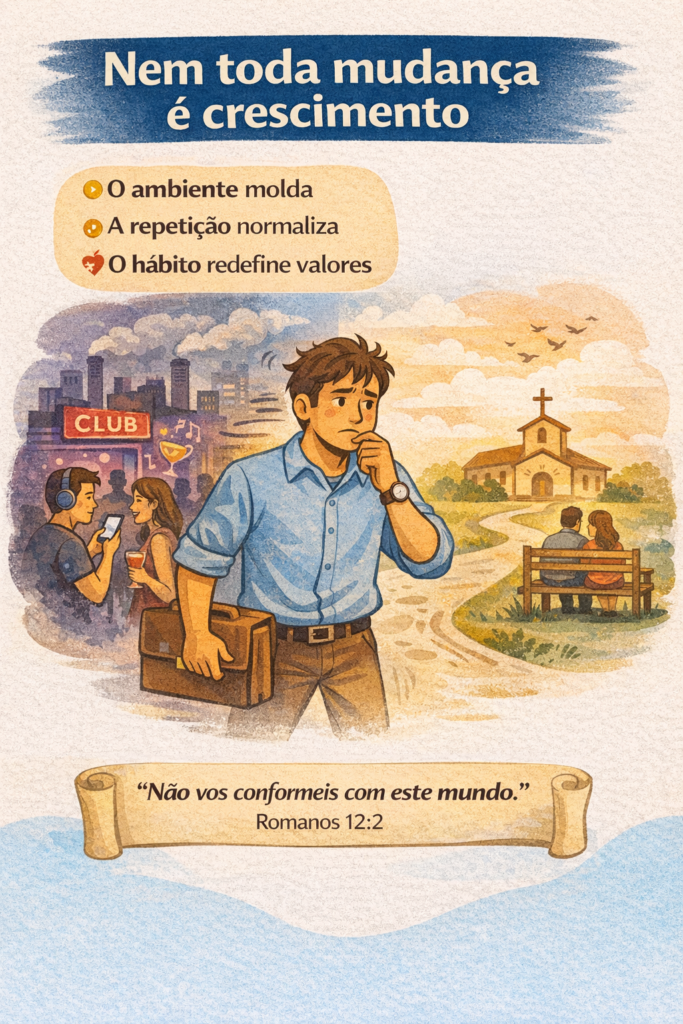 A pergunta que merece reflexão é direta: você está sendo transformado por convicção ou por adaptação?