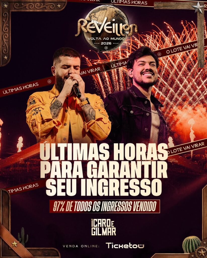 O Réveillon Volta ao Mundo 2026 acontece no Espaço Dois Ipês, com abertura dos portões a partir das 21h. Os últimos ingressos seguem à venda pela plataforma Ticketou.
